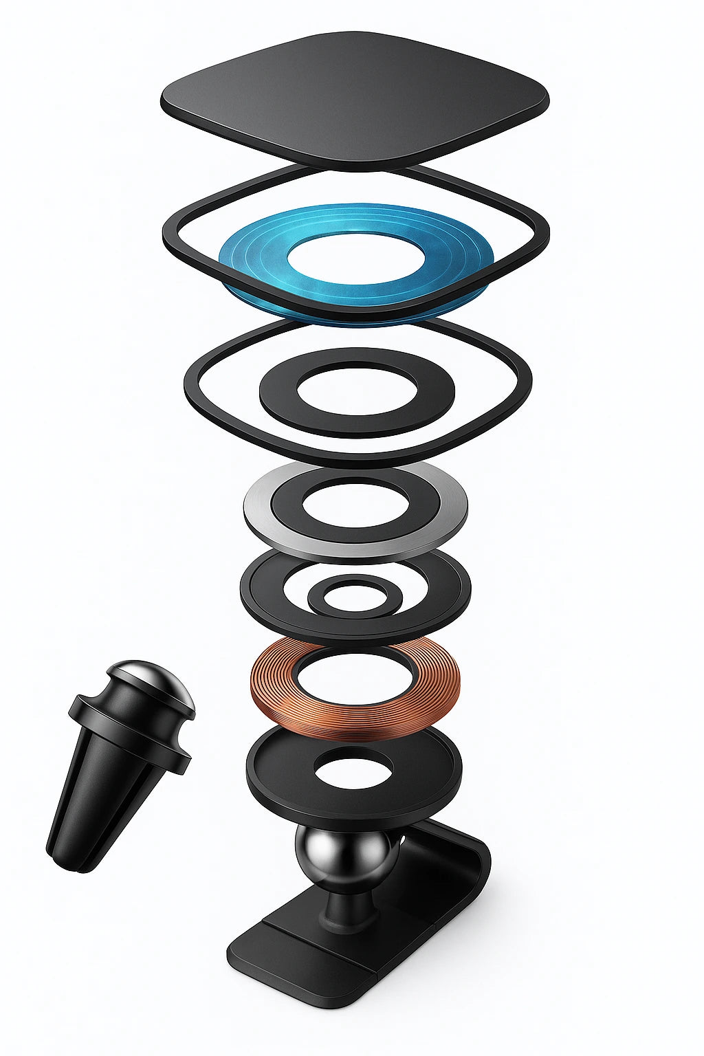 Diese sorgfältig konstruierte Halterung mit einem um 360° drehbaren Kugelgelenk und starkem Magnethalt passt sich mühelos Ihrem idealen Winkel an – so bleibt Ihr Telefon sichtbar, stabil und sicher an seinem Platz.