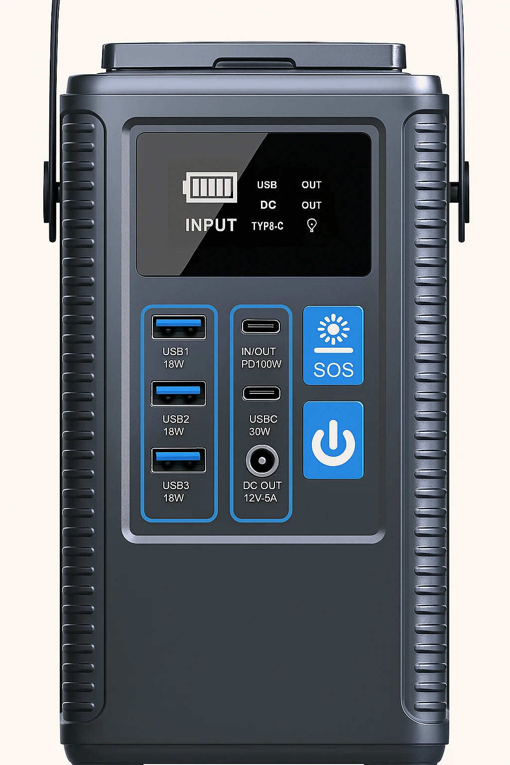Dieses tragbare Ladegerät sorgt dafür, dass Ihre Geräte – Telefon, Uhr, Ohrhörer und mehr – überall aufgeladen bleiben. Kompakt und dennoch leistungsstark, passt es nahtlos in Ihre Reise und ist bereit für Camping, Reisen oder unerwartete Stromausfälle.