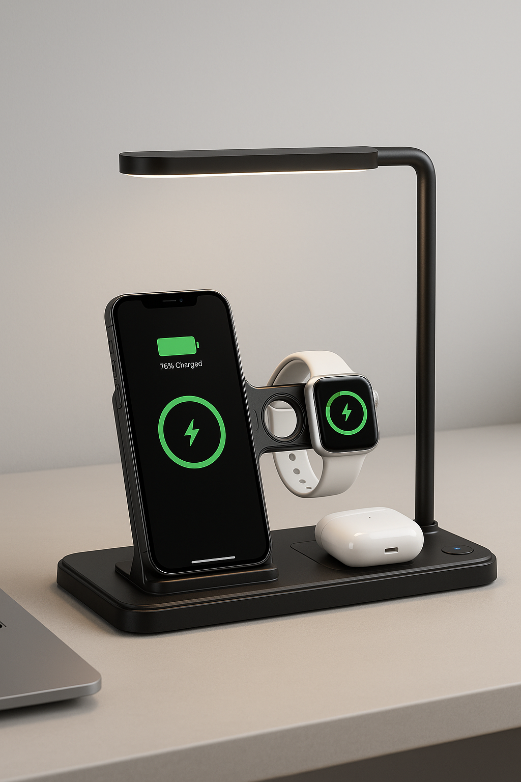 Das Gerät unterstützt QC 3.0-Eingangsstandards (z. B. 9 V/2 A) und verfügt über mehrstufige Sicherheitsvorkehrungen wie Überspannung, Überstrom, Übertemperatur, Kurzschlussschutz und Fremdkörpererkennung. Sowohl die Lampe als auch das kabellose Laden schalten sich automatisch ab, sobald die Geräte vollständig geladen sind.